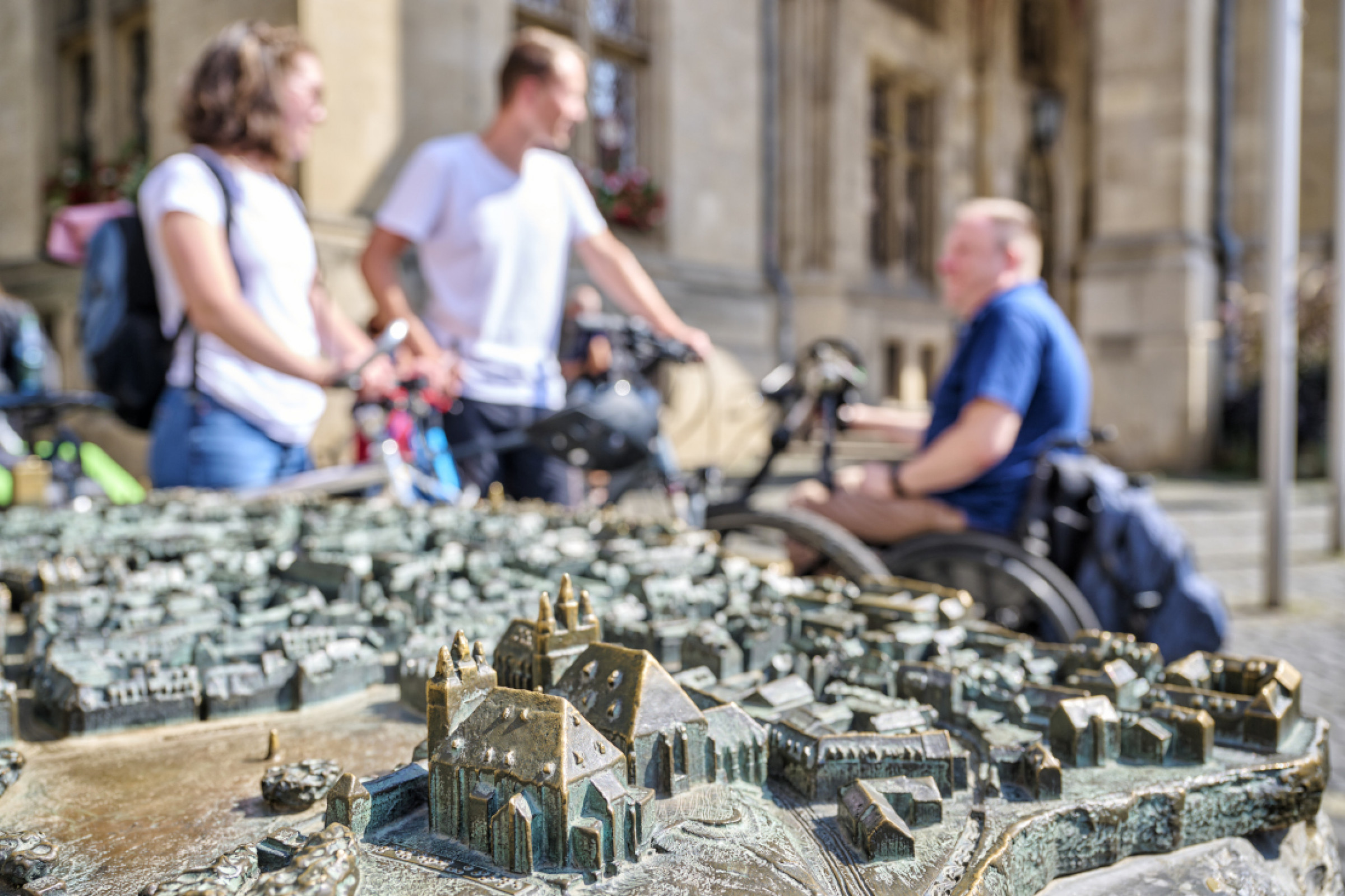 Über der Stadt erhebt sich der Petersberg mit einer der größten barocken Festungsanlagen Europas. Barrierefreier Zugang, ein modernes Besucherzentrum und eine interaktive Ausstellung eröffnen spannende Einblicke und schöne Ausblicke über die Altstadt. Ein besonderes Angebot ist die barrierefreie Erfurt-Tour mit der historischen Straßenbahn. Sie ist für alle Rollstuhlarten sowie für Menschen mit Gehbehinderung geeignet und bietet eine komfortable Entdeckung der Stadt. Wer die Stadt lieber selbst erkunden möchte, kann dafür u.a. das Tastmodell auf dem Fischmarkt mit Brailleschrift sowie das Modell auf dem oberen Plateau des Petersberges nutzen.