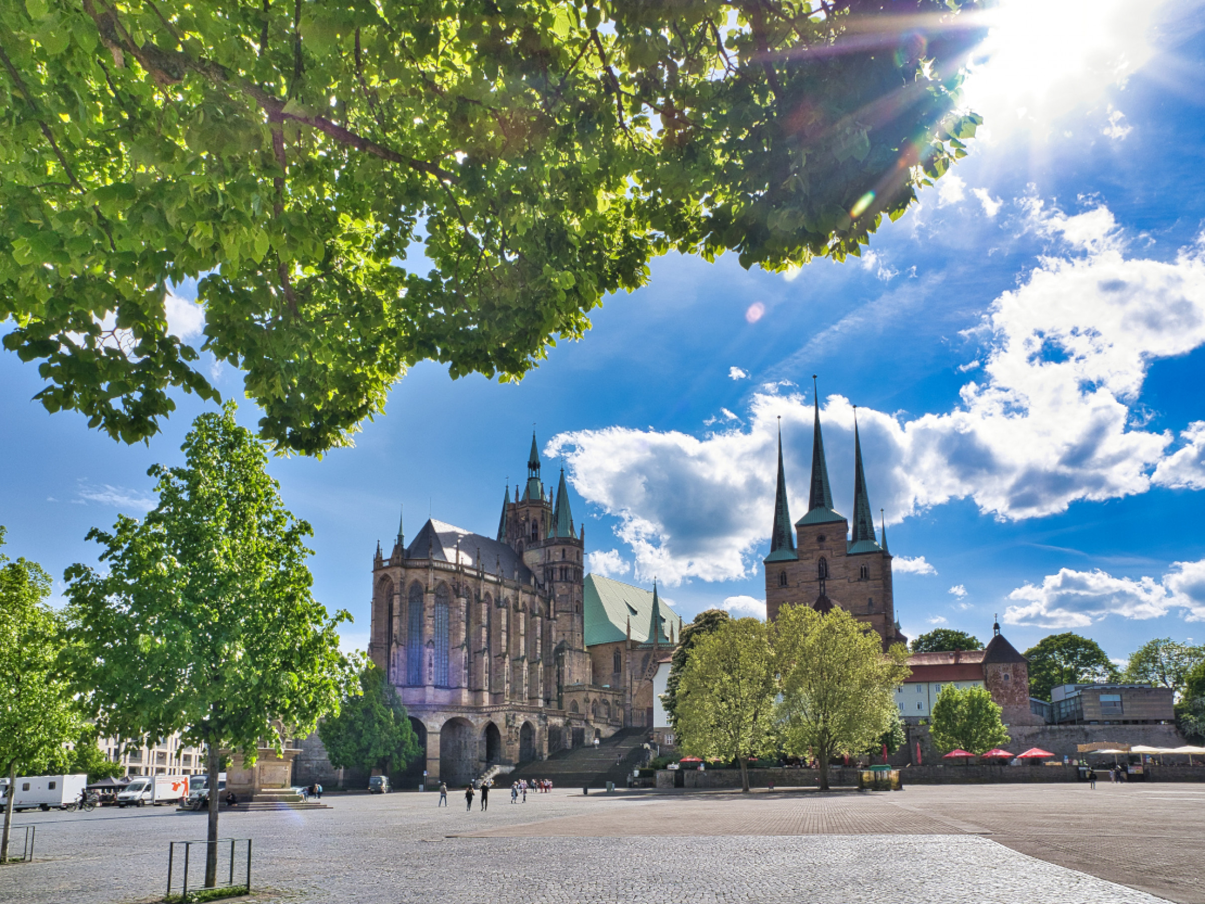 Ein Höhepunkt ist die Krämerbrücke – die längste durchgängig bebaute und bewohnte Brücke Europas. Einmal im Jahr, am dritten Juni-Wochenende, verwandelt das Krämerbrückenfest die Altstadt in ein lebendiges Mittelalter-Erlebnis. Seit 2023 gehört das mittelalterlich-jüdische Erbe Erfurts zum UNESCO-Welterbe und zeugt von der reichen Geschichte der Stadt. Der Domplatz bietet einen eindrucksvollen Blick auf Dom St. Marien und Severikirche. Auch ohne Aufstieg über die berühmten Stufen lassen sich Architektur, DomStufen-Festspiele im Sommer und der stimmungsvolle Weihnachtsmarkt im Advent genießen.