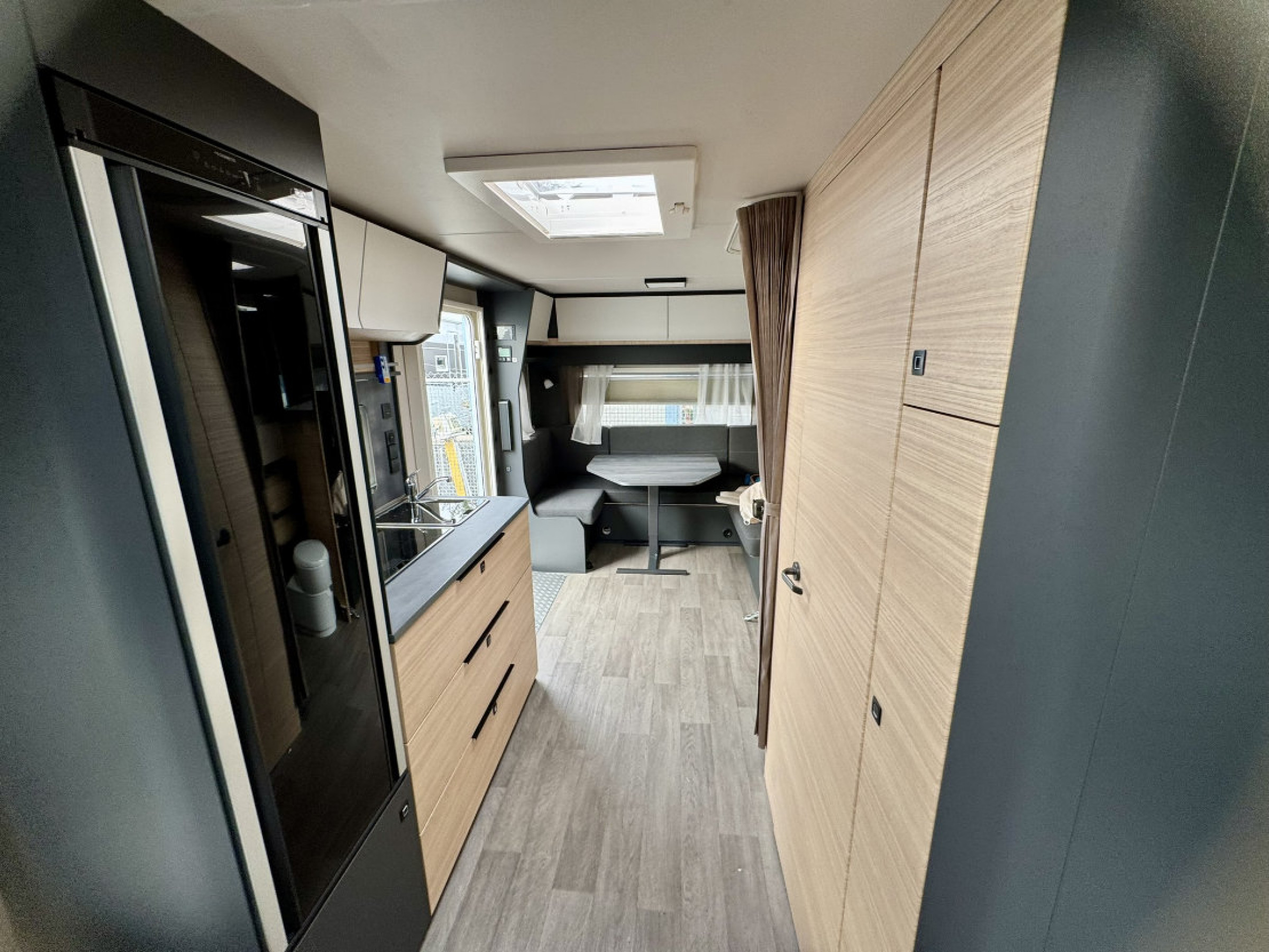 Der Wohnwagen bietet insgesamt vier Schlafplätze und kann flexibel genutzt werden. Neben zwei gut erreichbaren Einzelbetten lässt sich die Sitzgruppe in zusätzliche Schlafplätze umwandeln. Dadurch eignet er sich sowohl für Einzelpersonen als auch für Familien oder Begleitpersonen.
